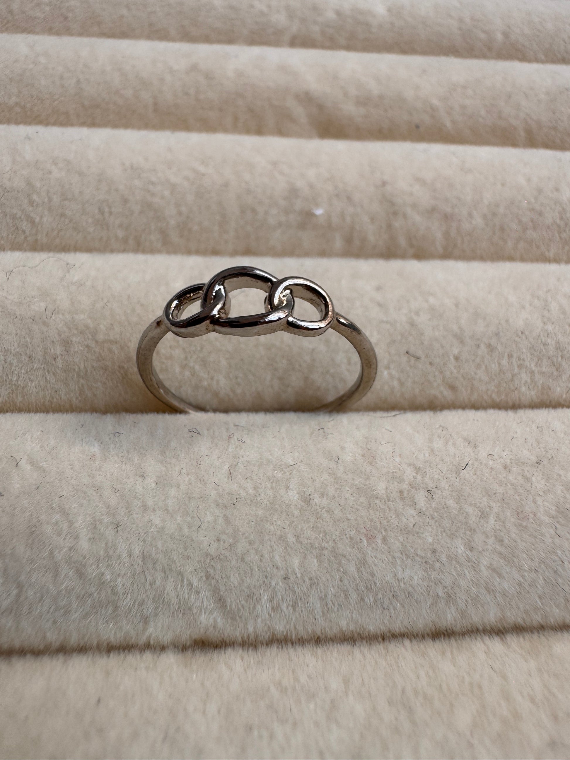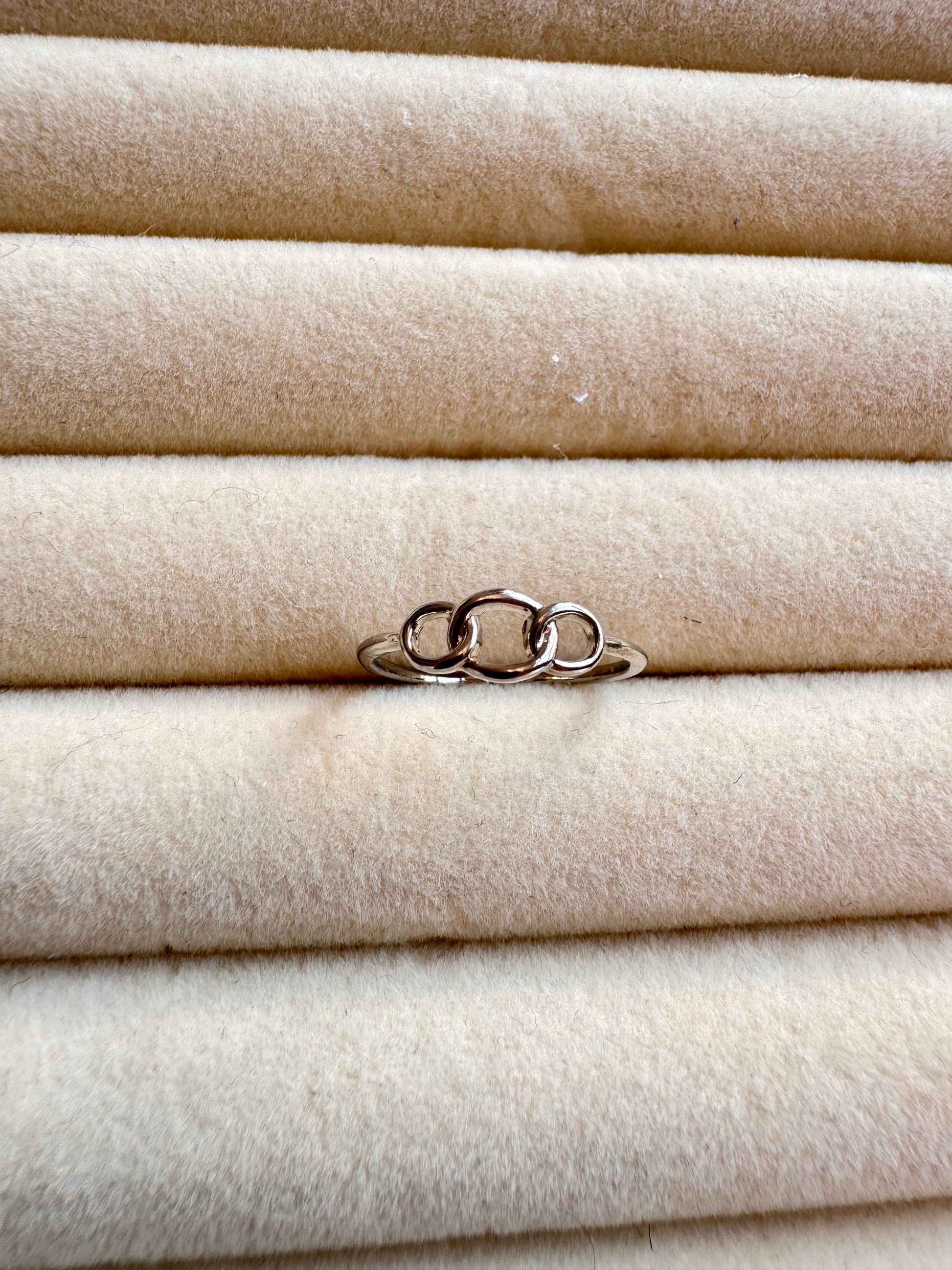 Meet your new daily essential. The Trinity Chain Ring features a delicate interlocking motif on a slender band. Effortless, airy, and timeless.