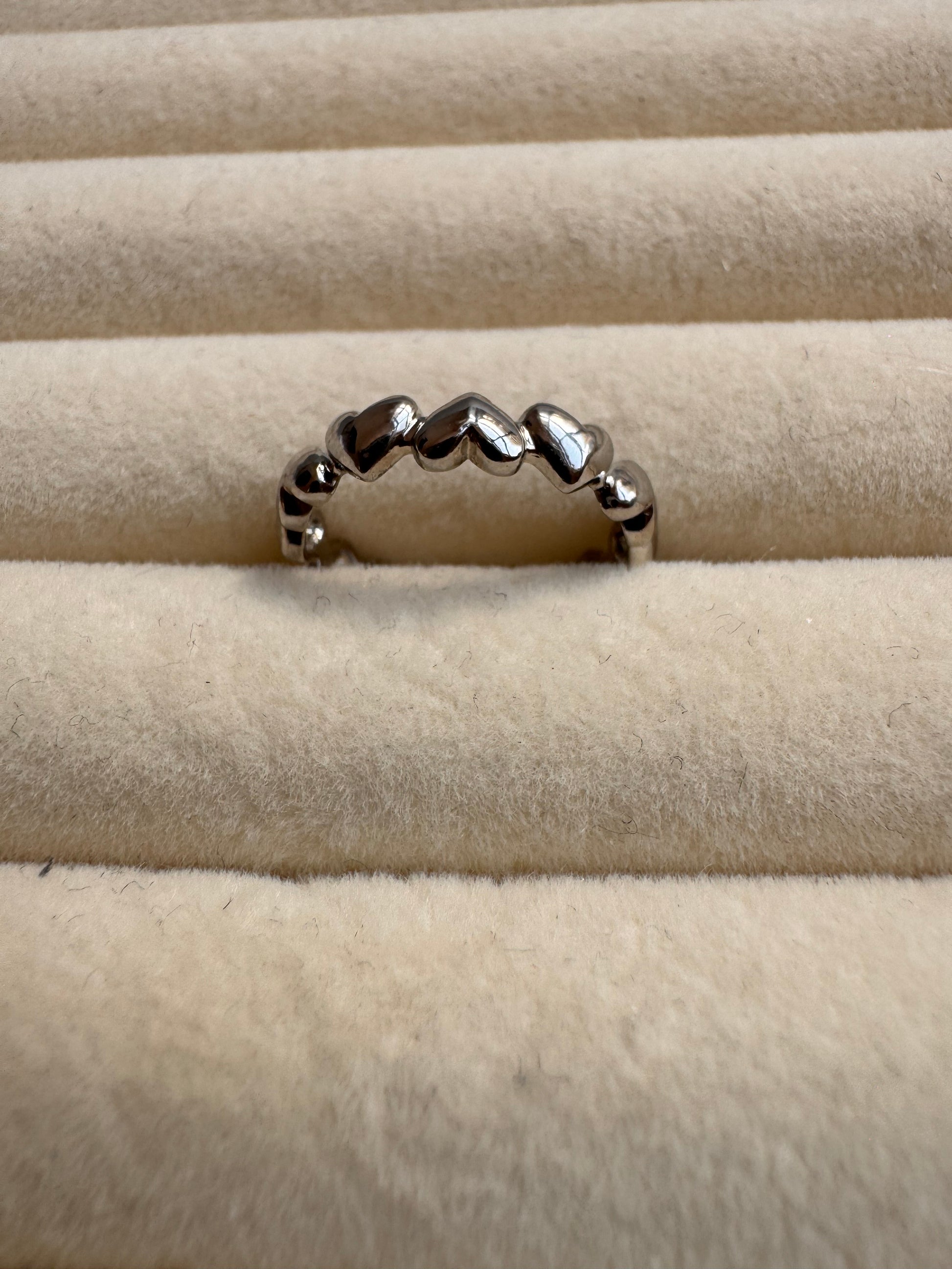 Celebrate every moment with our Eternal Heart Band. This charming piece features a delicate row of high-polish, 3D hearts that wrap comfortably around your finger. Whether worn as a stackable accent or a standalone statement, it’s a sweet reminder to lead with love.
