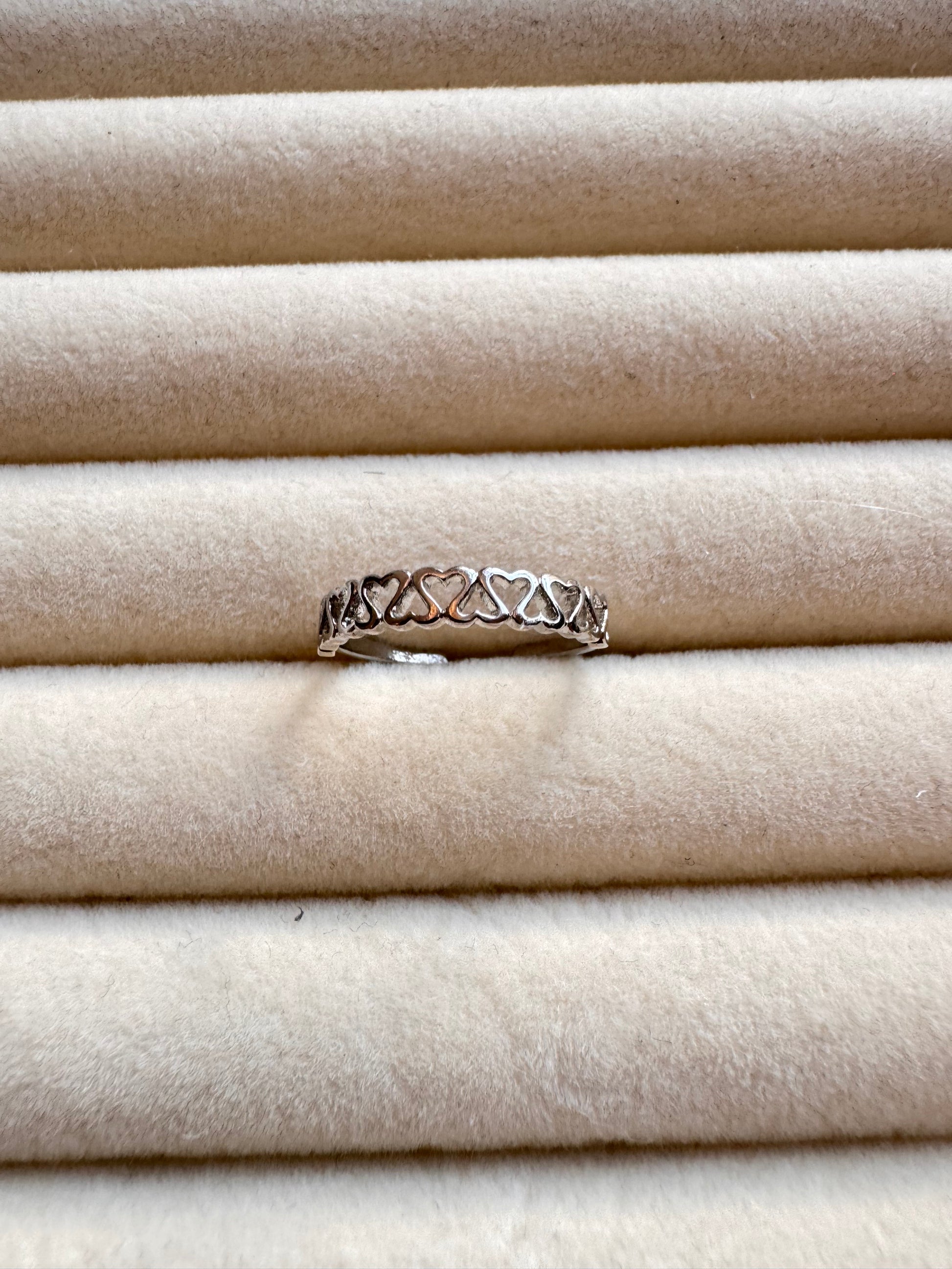 Design: A continuous eternity-style band featuring delicate, cutout hearts.