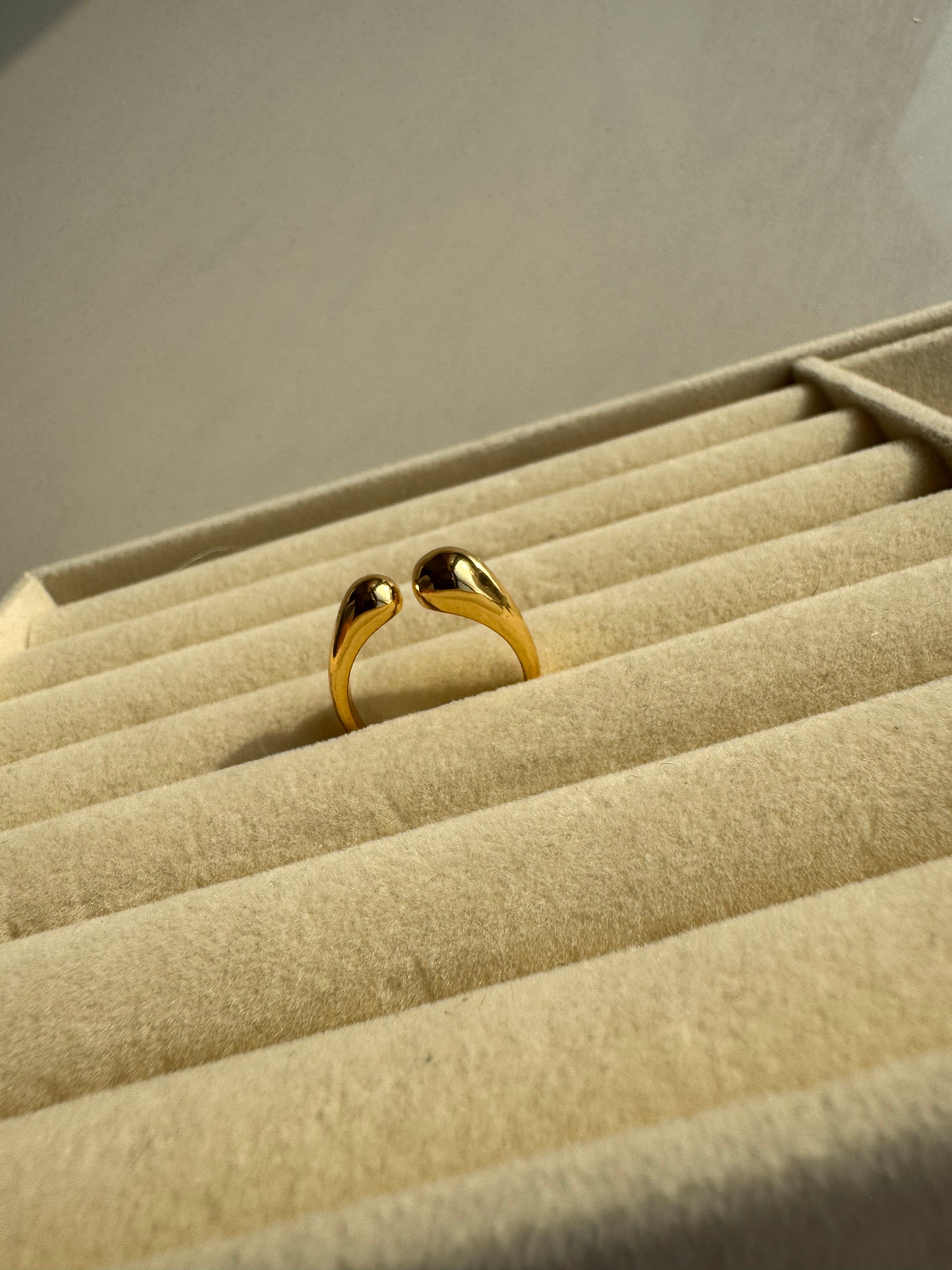 The striking contrast between the two rounded shapes creates a balanced and contemporary design that is both subtle and eye-catching. This ring is a perfect statement piece for those who appreciate clean lines and a modern aesthetic. It's lightweight enough for everyday wear but distinct enough to elevate your evening look.